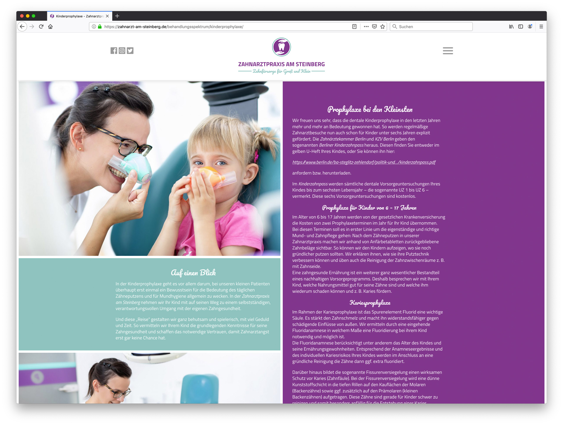 Praxismarketing - «Zahnarztpraxis am Steinberg»
