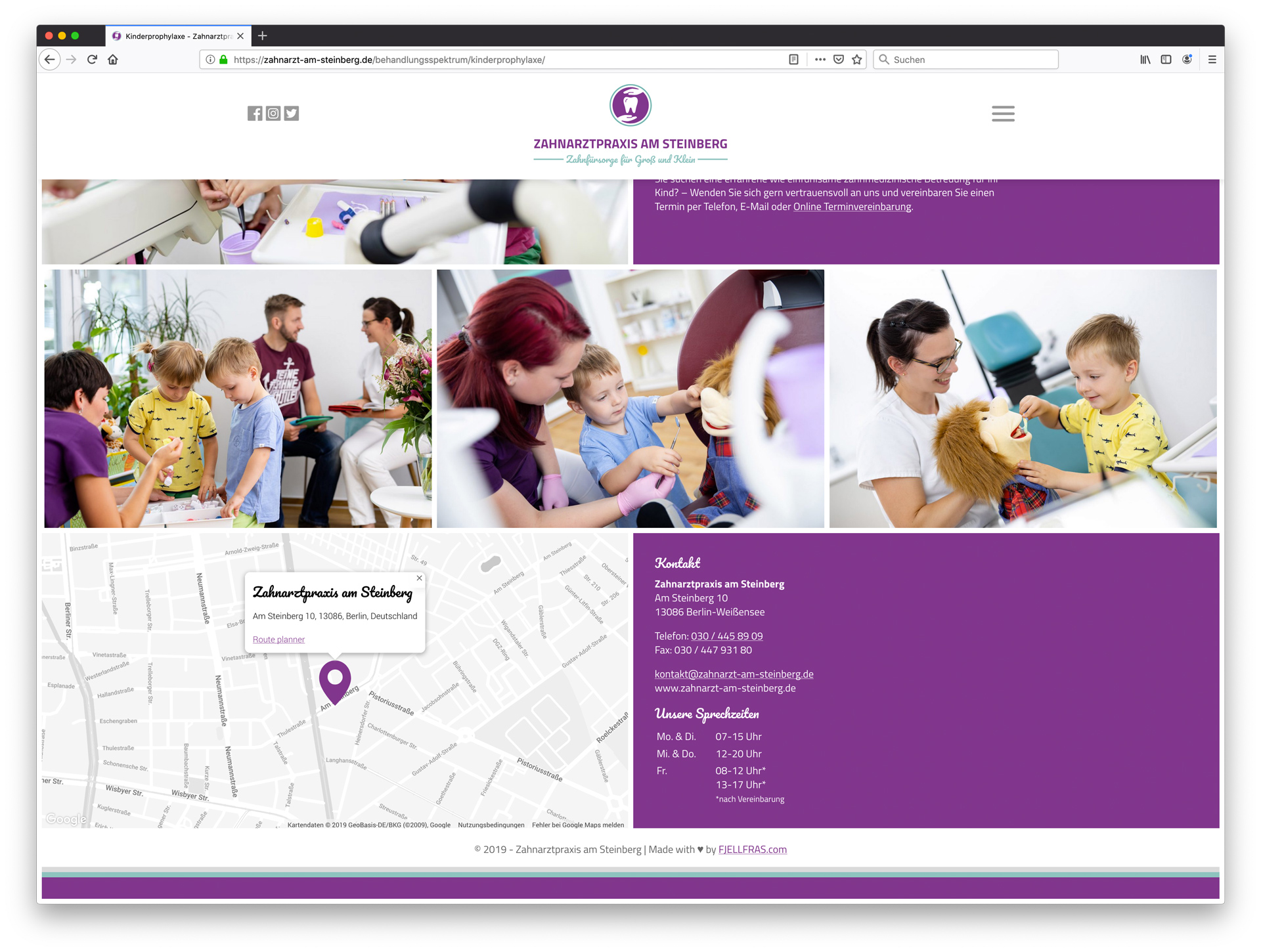 Die Praxiswebsite ist ebenso wie die Praxis selbst optisch und technisch auf dem allerneuesten Stand. Sie wurde entsprechend dem Fürsorgeprinzip der Praxis besonders nutzerfreundlich konzipiert und gestaltet. Wie jede Website von FJELLFRAS funktioniert sie auf allen heutzutage üblichen Bildschirmformaten und -größen; Stichwort: Responsive Design. Umgesetzt haben wir die Seite in Wordpress. Damit ist sie stets unkompliziert zu aktualisieren und bleibt auch für größere Änderungen oder Erweiterungen flexibel anpassbar.