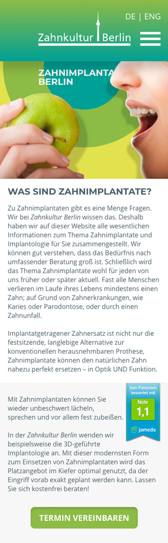 Website «Zahnimplantate Berlin» für Zahnkultur Berlin